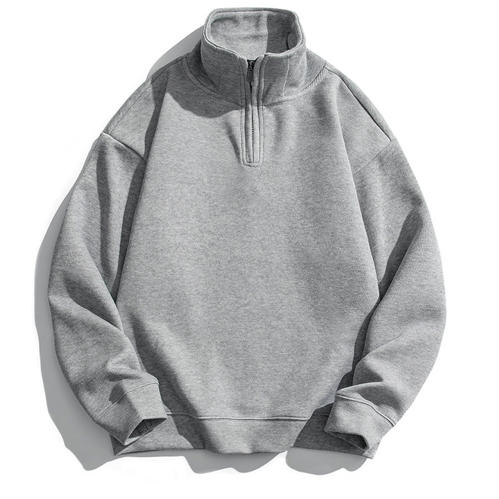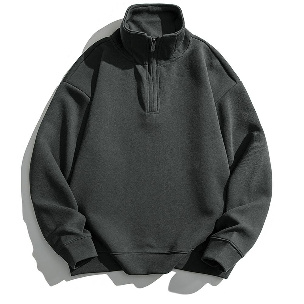 Half Turtleneck Zipper Sweatshirt Men's Winter Fleece Casual Loose Hoodie