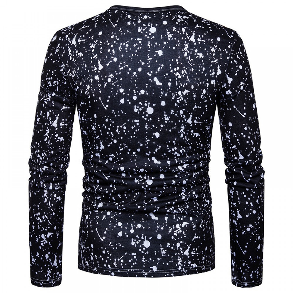 New Men's Large Size 3D Star Chain Print High Neck Long Sleeve T-Shirt Bottoming Shirt