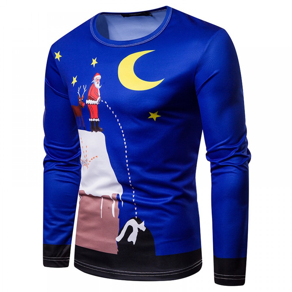 New 3D Personality Printing Fashion Men's Christmas Long Sleeve T-Shirt