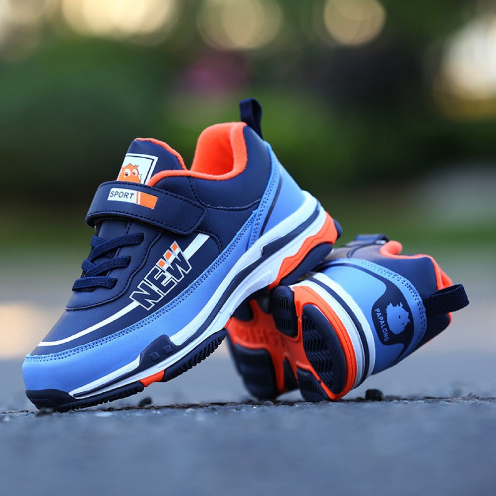 Spring New Leather Surface Velcro Boys Shoes Increase Non-Slip Wear-Resistant Children's Sports Shoes
