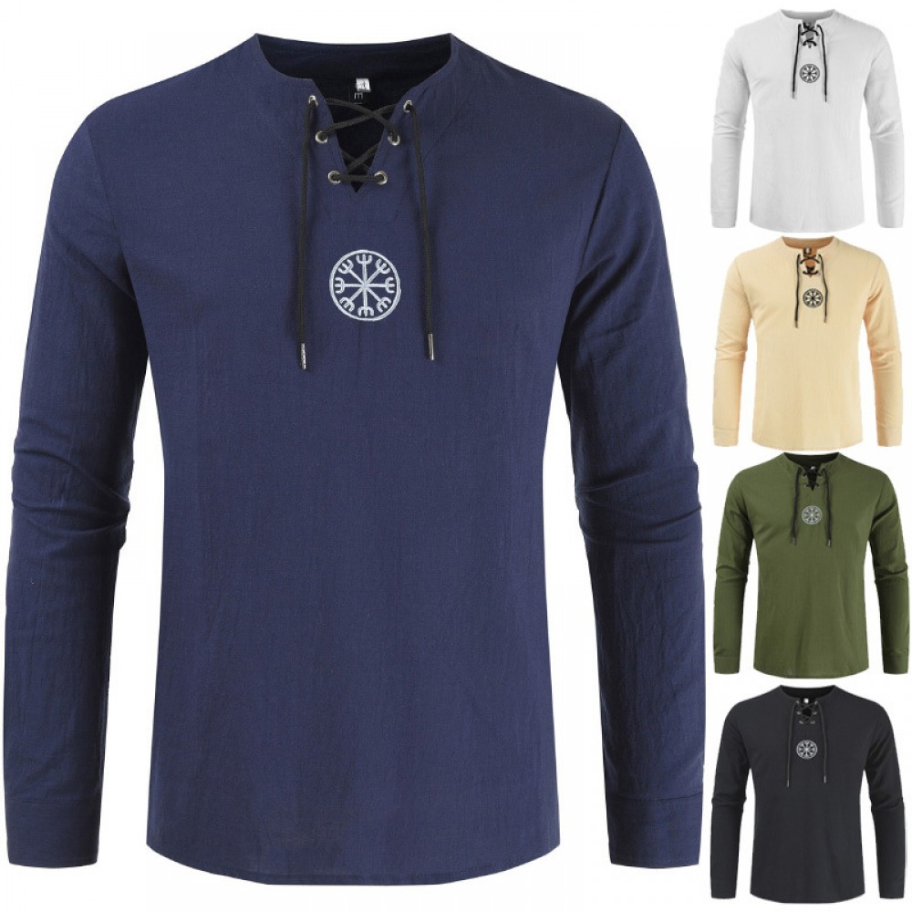 Casual Slim Shirt Long-Sleeved Cotton and Linen Solid Color Large Size Shirt Men's Shirts