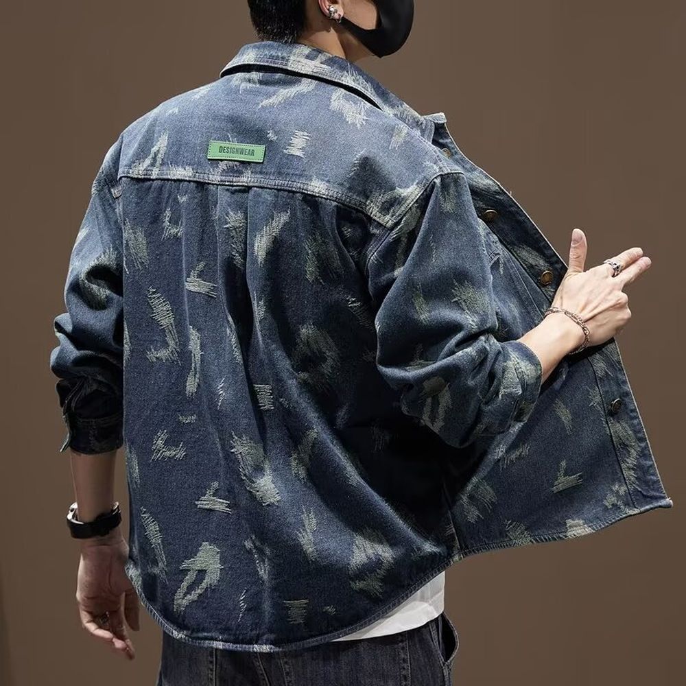 Loose-fitting Denim Jacket for Men Long-sleeved Coat