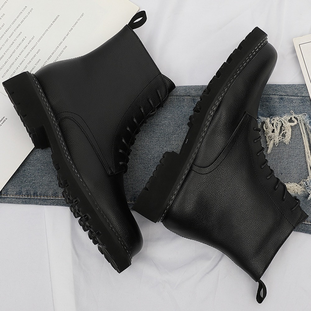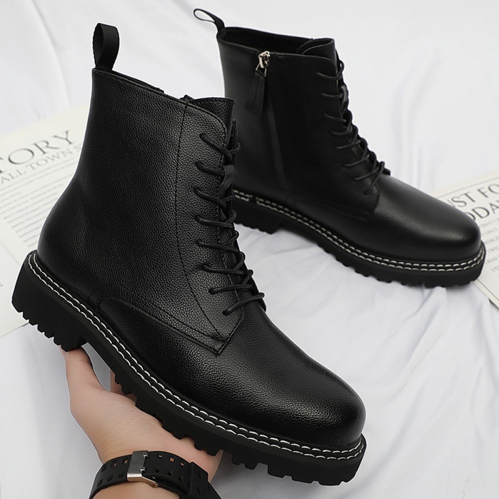 Martin Boots Men's Autumn New Leather Boots Casual Mid-Cut Tooling Boots High-Top Mens Shoes