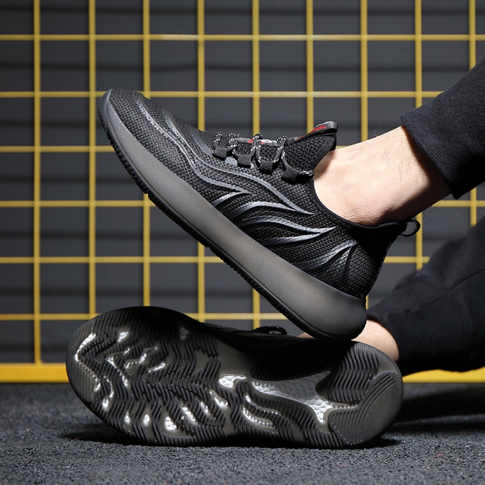 Men's Running Shoes Breathable Knit Slip On Sneakers Lightweight Athletic Casual Sports Shoes High Top All Black