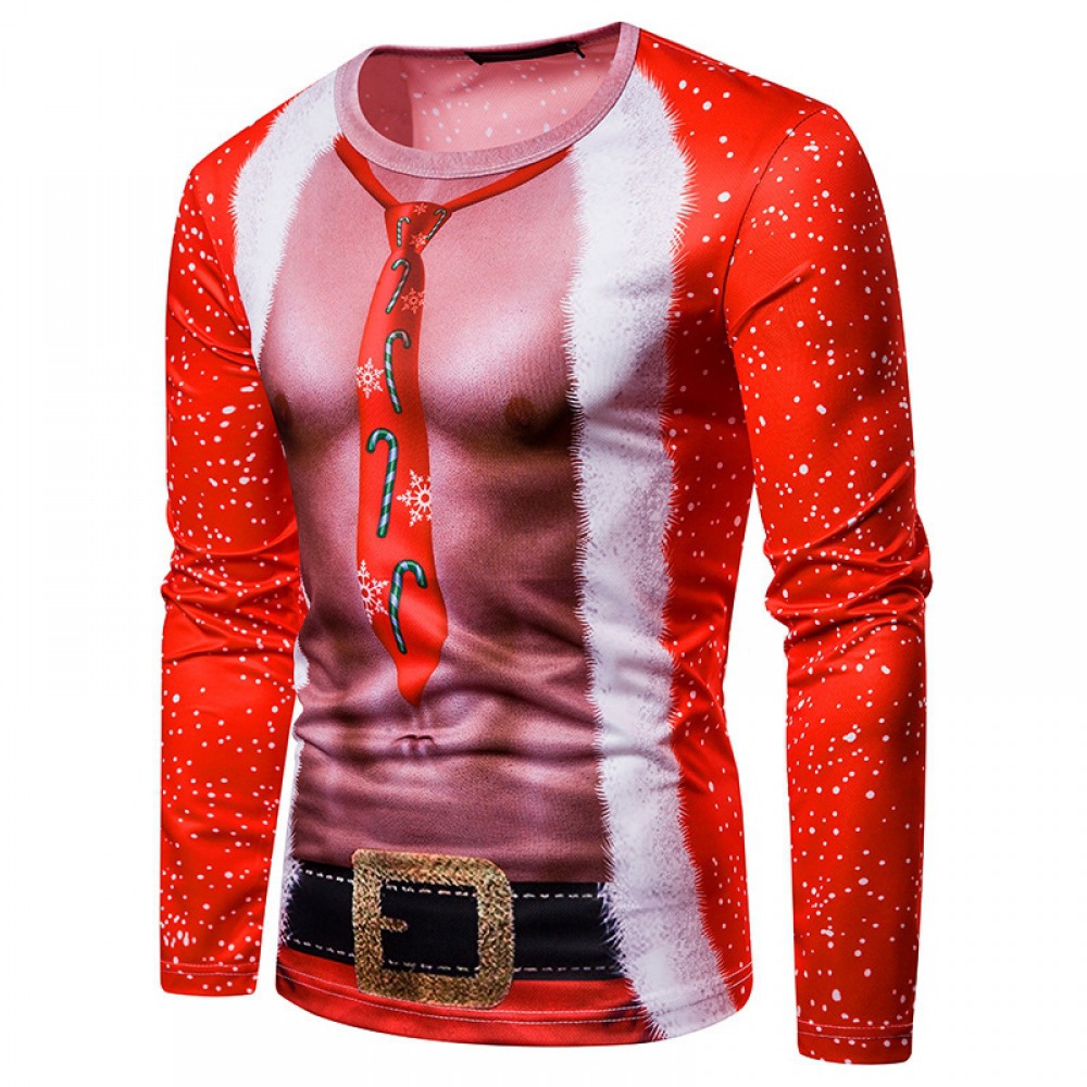New 3D Personality Printing Fashion Men's Christmas Long Sleeve T-Shirt