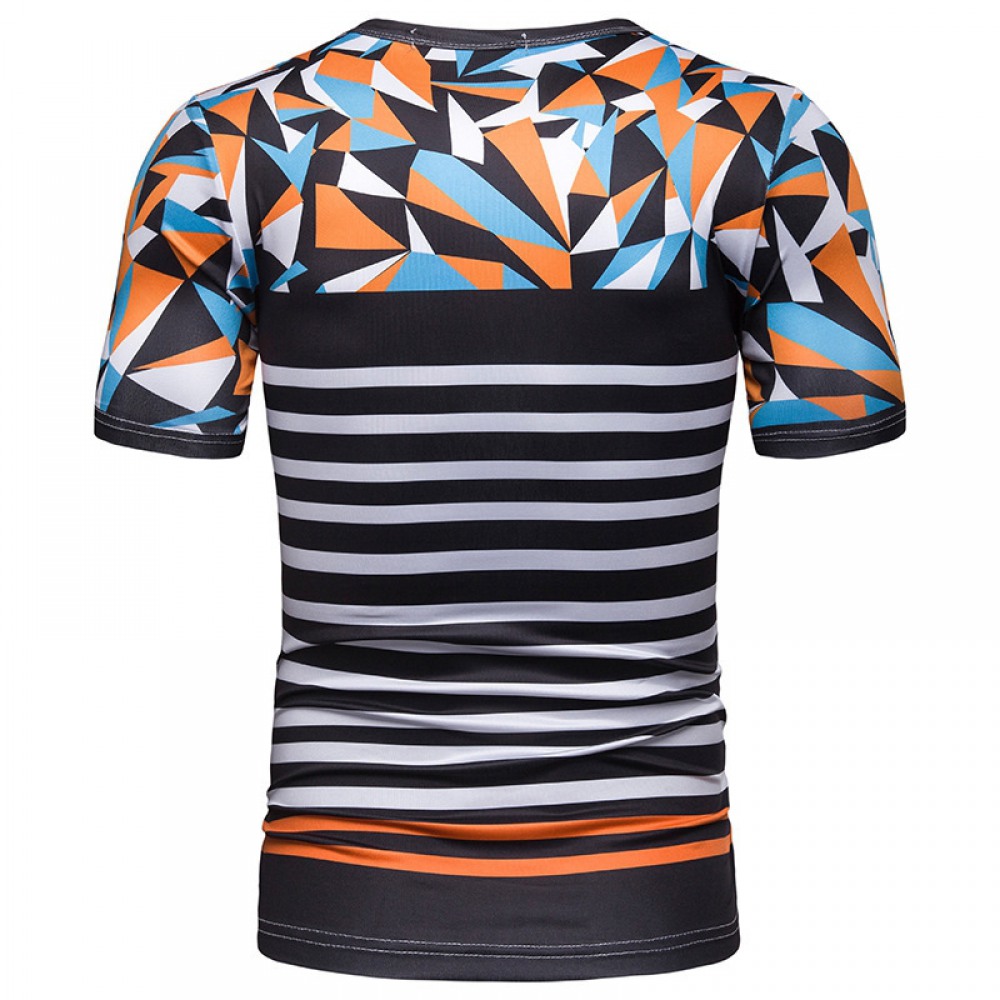 Flat Summer New Men's Round Neck Fashion Short-Sleeved Ethnic Print All-Match T-Shirt